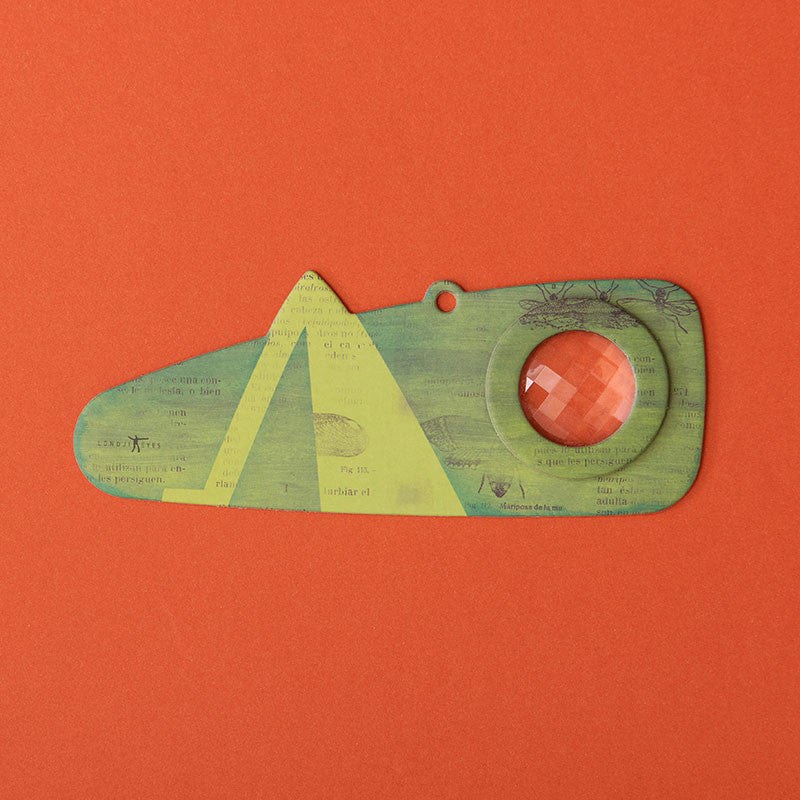 An optic eye lens in a ladybug, bee or grasshopper illustration to let you see like an insect. A small kaleidoscope ideal for travel entertainment.