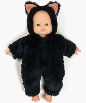 Faux fur jumpsuit with cat ears for Minikane Babies 28cm dolls and baby dolls.