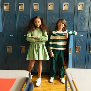 This classic rugby tee gets a modern update — made for every kid and every adventure. With bold green-and-white stripes and an embroidered “MC” monogram, it’s a nod to vintage style with a unisex fit that’s made for play. Crafted from cozy recycled and organic cotton, it's a wardrobe staple you’ll reach for again and again.