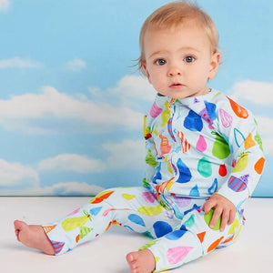 Features relaxed fit, fold over foot cuffs to help with temperature regulation and a two-way zip for easy nappy changes.