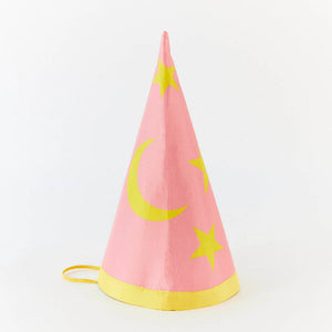 Witch Hats are 10-inches tall, and 21-inches in circumference with an elastic band that stretches to fit most children ages 3-9 years old comfortably. Made from 100% pure mulberry silk.