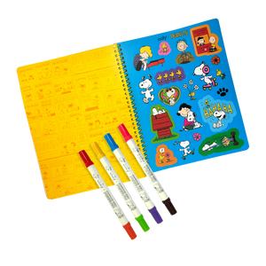 Packed with 60 pages of puzzles, games, and coloring sheets, this travel-ready kit is perfect for kids who love Peanuts adventures. This activity set includes 4 double-ended markers with 8 colors and 2 sheets of Peanuts-themed stickers. 60 pages activity book of Peanuts puzzles, games, and coloring Includes 4 double-ended markers (8 colors) 2 sheets of Peanuts stickers Perfect for travel or at-home fun
