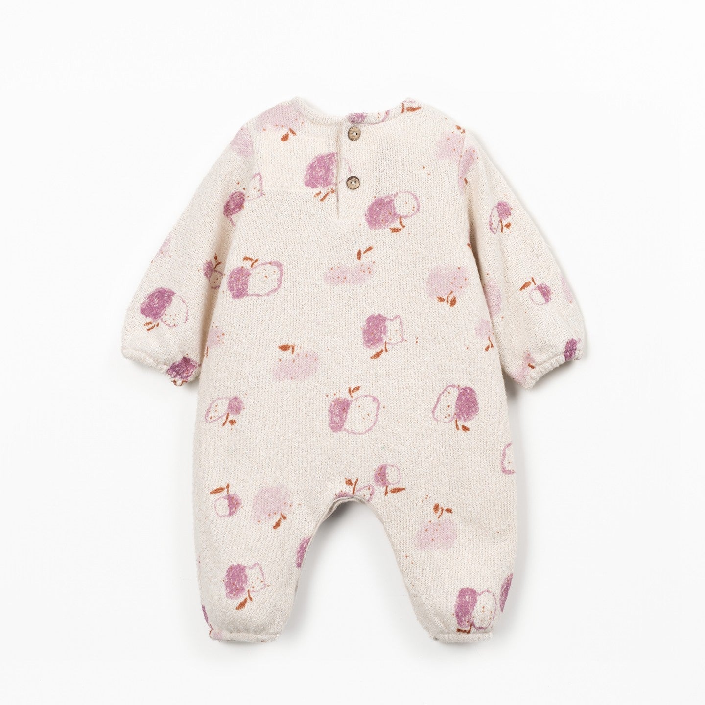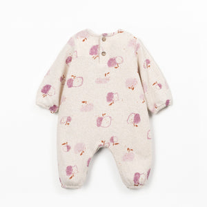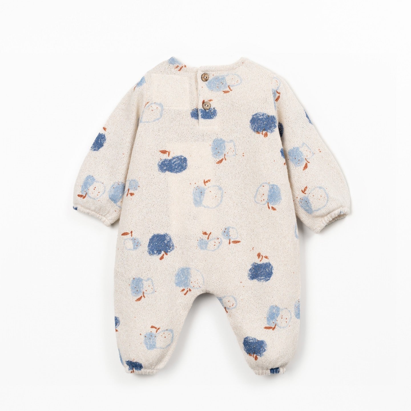 This jumpsuit is made of jersey fabric with a mix of cotton, recycled polyester and recycled cotton. It incorporates the Re(Play) yarn derived from the recycling of our post-industrial waste. It is a long model, features a shoulder opening with a wooden button, snap fasteners between the legs made of nickel-free metal, elastic at the leg and arm openings, and a front pocket.