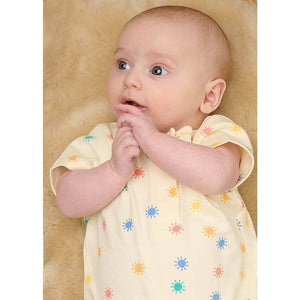 Cutest rainbow sunshine printed baby shorts onesie. Made from organic cotton, the perfect newborn baby gift. Press stud opening at the front neck and crotch make dressing and diapering nice and easy.