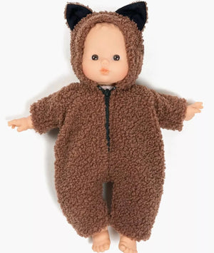 Faux fur jumpsuit with bear ears for Minikane Babies 28cm dolls and baby dolls.