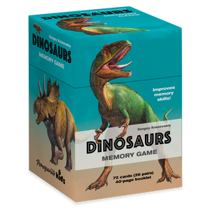 From Achelousaurus horneri to Tyrannosaurus rex this memory game includes 36 pairs of dinosaurs as illustrated by celebrated paleoartist Sergey Krasovskiy. Sharpen your recall and match pairs to win! A 40-page booklet includes illustrations and scientific names for each of these prehistoric beasts.  A perfect game for children and adults to test and improve memory function.