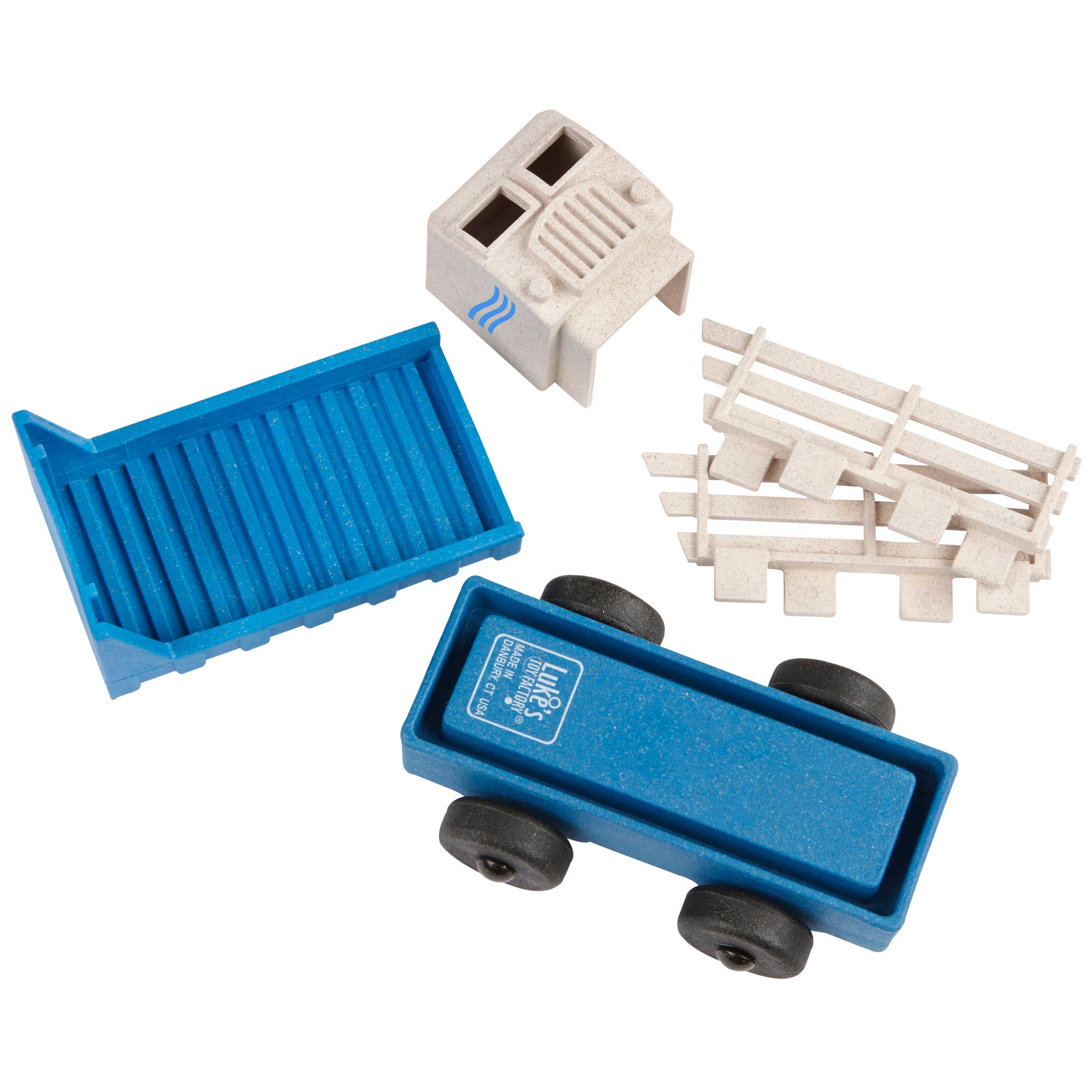 This STEM educational toy truck encourages early childhood development of problem solving, creative play, and fine-motor skills in kids aged 3 and up.  Five part stacking truck toy.  Parts Interchangeable with other Luke's Toy Factory toy trucks.