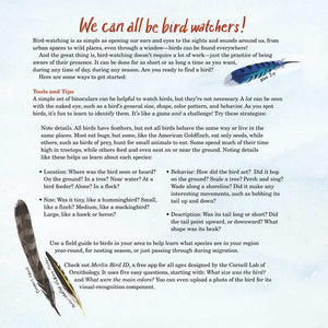 A joyful and informative guide to birdwatching for budding young birders from an award-winning author-illustrator duo. How do you find a bird? There are so many ways! Begin by watching. And listening. And staying quiet, so quiet you can hear your own heartbeat. Soon you’ll see that there are birds everywhere—up in the sky, down on the ground, sometimes even right in front of you just waiting to be discovered!