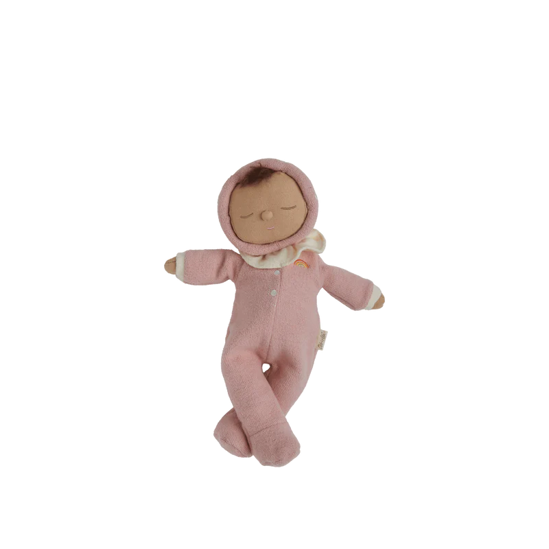 Made from the gentlest cotton and designed with a lightly weighted body for calm and comfort, this Dozy Dinkum is perfect for naptime, playtime, and every cuddle in between. A sweet brown curl peeks from under their hood, just waiting for tiny fingers to pat and stroke.