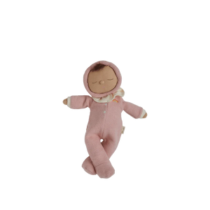 Blushing pink and full of charm, Toadstool Pip is a pocket-sized daydream dressed for woodland whimsy. With a pastel mushroom-cap hood, delicate embroidered spots, and a ruffled collar for extra enchantment, Pip is ready for all the softest snuggles.