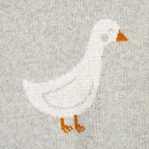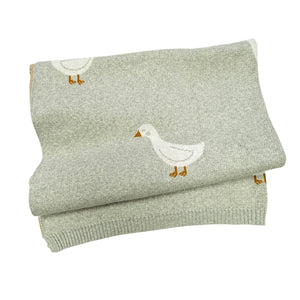 Organic Jacquard Knit Baby Blanket featuring a charming all-over duck motif in a soft, gender-neutral palette. Lovingly crafted from 100% GOTS-certified organic cotton, this jacquard knit blanket is designed to be breathable, lightweight, and irresistibly cozy — perfect for playtime on the floor, stroller naps, or nursery cuddles.