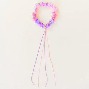 The Blossom Silk Garland features a stretchy elastic band (18 - 28-inch diameter), wrapped in 100% silk, hand-painted, and silkscreened in our Enchanted Blossom colorway. Fits comfortably on even the most sensitive little ones.