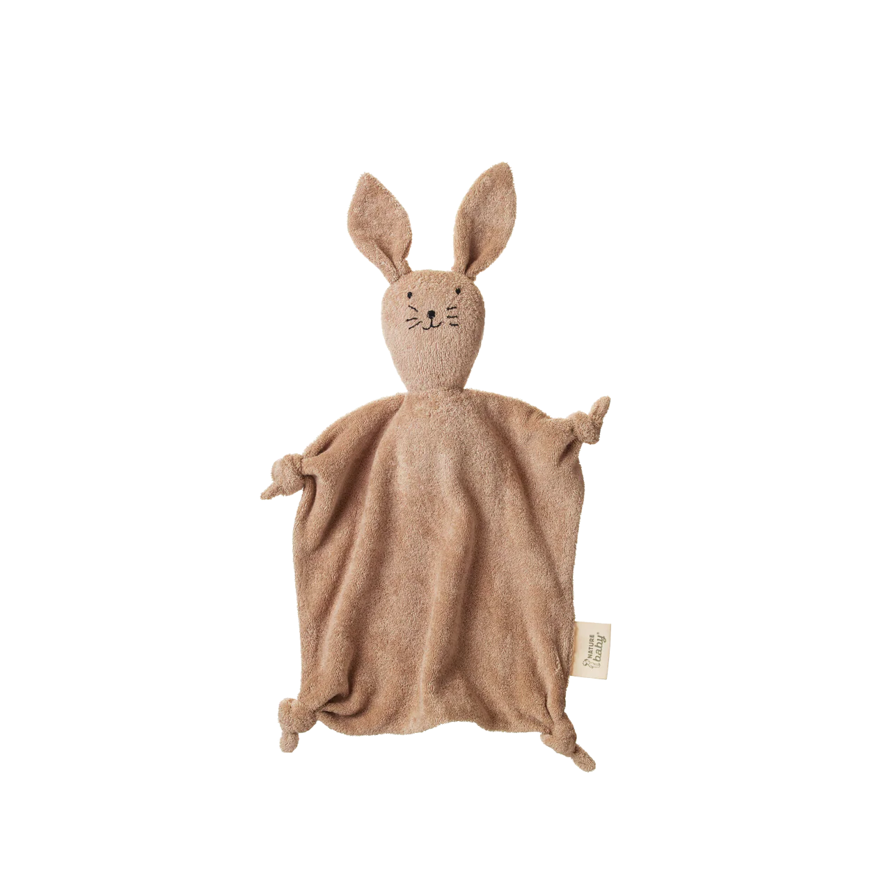 Meet Casey Cuddle Bunny, made from snuggly organic cotton terry and filled with organic cotton wadding. Our cuddle bunnies are designed to create comfort and calm, and can act as a sleep aid for little one. These cute new cuddle friends are perfect for young ones, knotted feet make it easy to grasp and are also great for chewing on when baby is teething. Features hand embroidered face detailing which makes each toy a little different and very special, and space for little one's name on the tag so their cuddle bunny remains theirs for as long as they need.