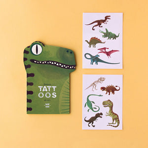 Ten temporary dinosaur tattoos that you can put anywhere on your body. Dermatologically tested. Great for dino themed party.
