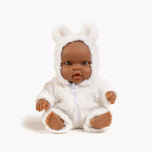 Peque doll and exclusive Minikane® wardrobe .– 21cm tall.– Sold with terrycloth Winnie the Pooh jumpsuit.